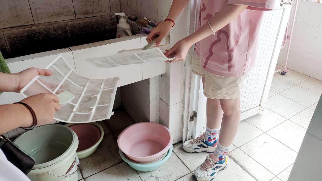 活动开始,全体发展对象于综合教学楼C204教室接受相关理论指导,熟悉清洁空调的操作步骤及要领,并且认真观看青志团邹以翔同志的演示。随后全体发展对象按青志团要求进行组队与空调清洗点分配,并带好清洗工具立即前往清洗点。由于数月的累计,空调滤网上已经积了厚厚的一层灰,各位发展对象小心拆卸将空调滤网取下并仔细清洗干净后再装回,经过两个小时的努力,各位发展对象的清洗任务完美达成。