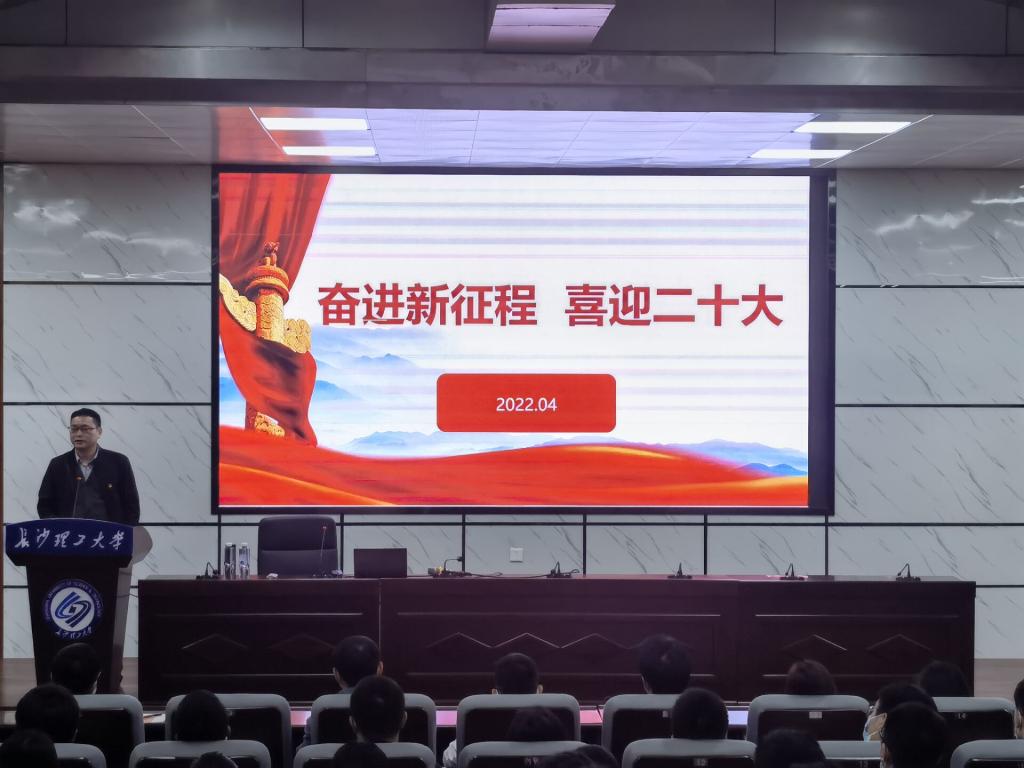 4月19日晚七点,能动学院在金盆岭校区4教报告厅进行了第39期入党积极分子第二次党课学习。本次党课由物电学院党委书记张国强讲授,党课主题为“奋进新征程,喜迎二十大”。党建辅导员罗亦欧出席活动。