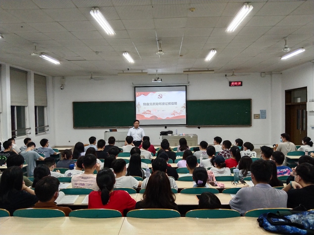 4月25日下午6:40,能动学院在云塘校区综合教学楼A205教室进行了第二十五期预备党员培训班开班仪式暨第一次党课,本次党课由校党委组织部副部长靳攀科授课,辅导员李文豪出席此次活动。