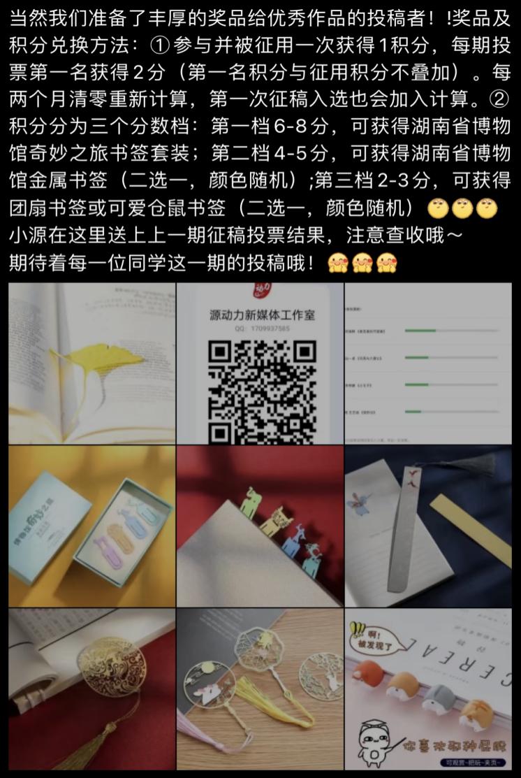 本活动旨在提高能动学院学子的写作能力,培养文学素养,为爱好文学的同学们提供一个自我挖掘,自我完善,丰富自己的平台。活动要求投稿人分享一本自己最喜爱的书和推荐语,以此吸引同学们投票;“小源的书屋”推送评率为两周一次,并通过积分兑奖制的活动机制来对投稿的同学进行评奖,“源动力新媒体工作室”官Q对积分结果进行公示。活动从4月23日开始,截至止6月4日,源动力公众号共收到17篇投稿,皆在源动力公众号中推送,奖品也已发放至同学手中。