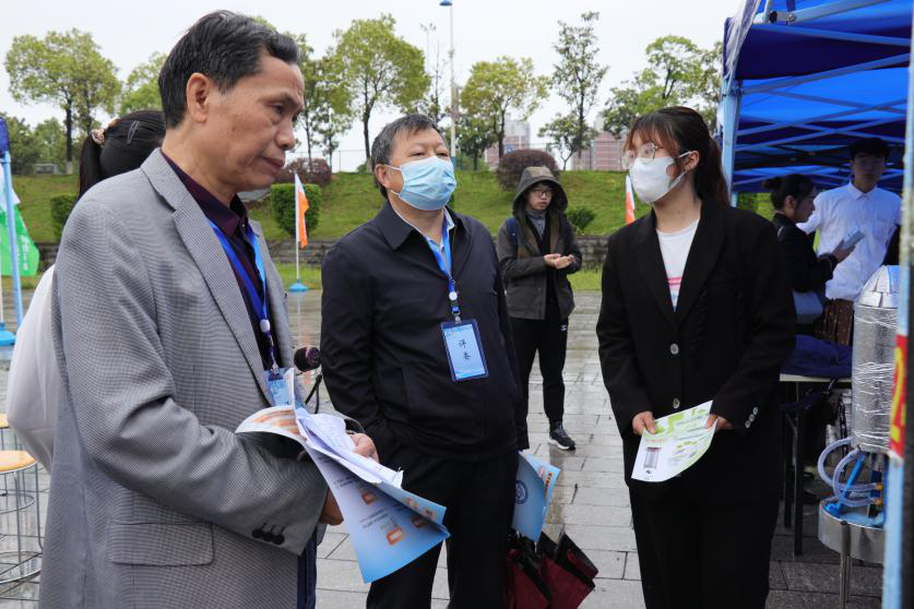 本次竞赛共有来自全校的33支队伍参加路演,项目涉及能源、电力、交通、水利、机械等多个领域,项目包括科技创新与社会实践两个类别。上午10时,路演正式开始,评委老师结合项目材料进行路演问答,各项目布展准备充分,积极分享了各自作品的节能减排社会实践与科技创新成果。