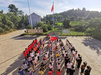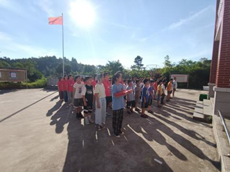 2022年7月11日,能动学院“红烛”科普筑梦团队在永丰村村部举行升旗仪式。