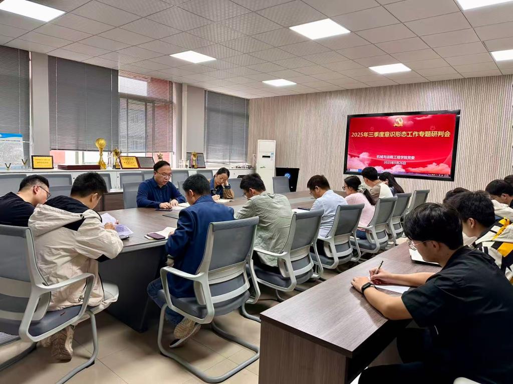 9月26日上午,机械学院党委在工一B411会议室召开2025年度三季度意识形态工作专题研判会议。会议由学院党委书记孔伟红主持,学院领导班子成员、专职组织员、师生党支部书记、全体辅导员参会。