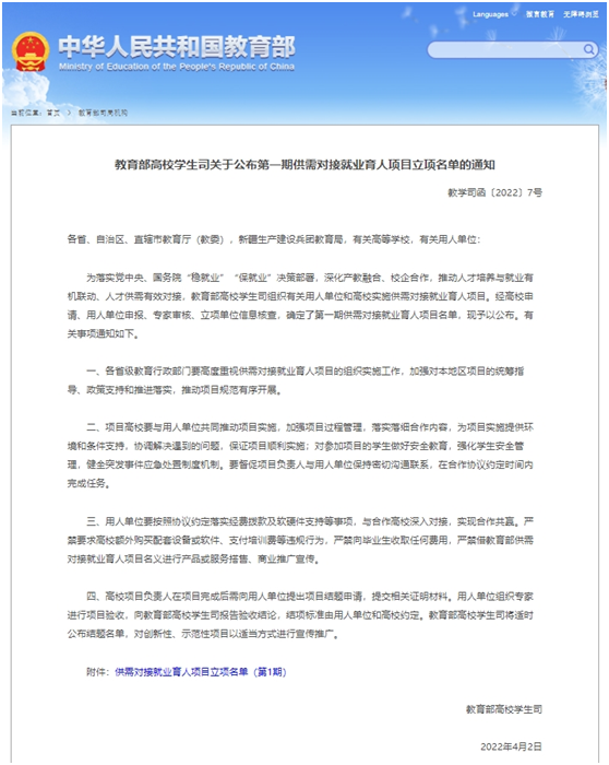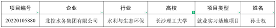 近日,教育部高校学生司下发《教育部高校学生司关于公布第一期供需对接就业育人项目立项名单的通知》(教学司函〔2022〕7号)文件,公布了全国第一期供需对接就业育人项目名单,我院孙士权副教授牵头主持的《北控水务集团—88038威尼斯智慧水务就业实习基地项目》(编号:20220105880)成功获批。