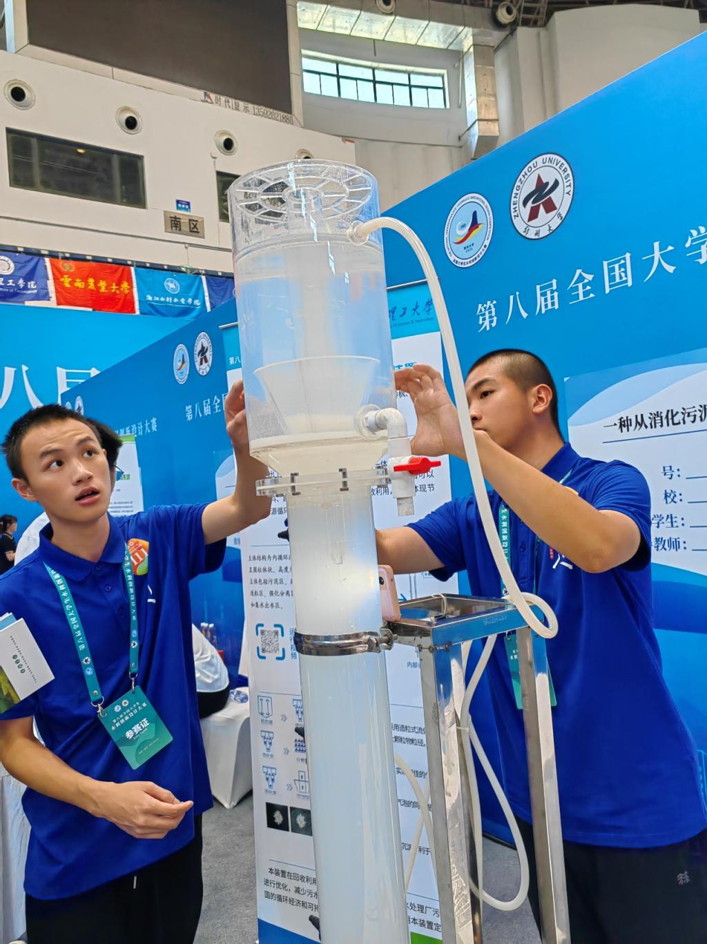 本次大赛的主题为“水利高质量发展”,利用多种技术围绕新阶段水利高质量发展进行实物作品的创新设计与制作,注重节水优先、人水和谐、可持续展及新技术的应用。比赛经网络评审和现场决赛,通过作品演示、分组答辩和答辩复赛等环节进行。由威尼斯官网水利与环境工程学院谭舒婵、姜诗雨、付茹萍、潘卓、莫凡丁同学完成,隆院男、余关龙老师指导的作品《“水慧先知”——基于土壤墒情和天气预测的智能灌溉装置》获一等奖;由邱子仪、张晨星、全锡岳、刘玲枫、李文凯同学完成,吴方同老师指导的作品《一种从消化污泥中高效回收磷的一体化流化床装置》,以及由高樱芷、邓钊鹏、李文田、徐玉娟、石一同学完成,程永舟老师指导的作品《船桥守护者——新型旋转式桥墩防撞减冲装置》分别获二等奖。