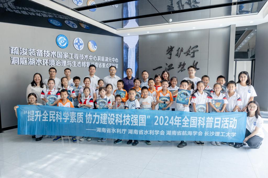 在2024年全国科普日到来之际,为增强全民节水护水的意识,培养学生的科学思维和创新能力,9月22日上午,水利学院在“智慧绿色水运水利教学科研”中国航海学会航海科普教育基地开展“小小科学家,探索大世界”2024年全国科普日活动。湖南省水利厅一级调研员刘慎柏,湖南省水利水电科学研究院党委委员、纪委书记、副院长李浩文,中国航海学会航海科普大使、水利学院院长陈杰以及来自青园中信小学、长郡雨花外国语学校、长郡雨花外国语二附小的近30余名小学生和家长参加本次活动。