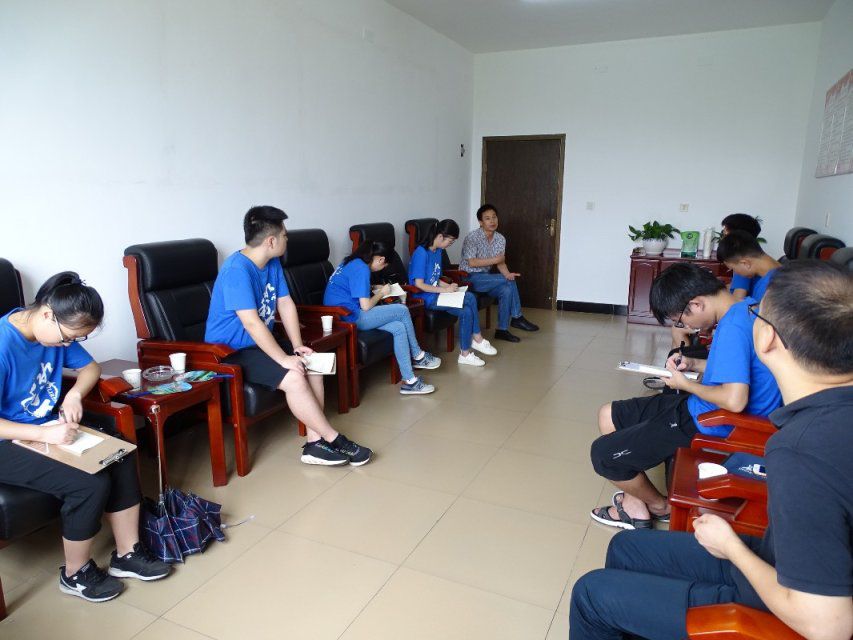 上午,实践团成员到达石门县皂市镇人民政府,党委书记向绪政、政协主任胡国清、副镇长杨萍和水管站站长晏翔热情接待实践团成员。实践团成员们围绕河长制度就河长制推行的意义、河长的主要任务以及在管理河流时出现的问题等六个方面进行采访。谈及河长制的重要性,胡主任说道:“河长制度是落实绿色发展理念,推进生态建设的内在要求。它的制定与推行有助于解决中国复杂水问题、维护河湖健康生命,更是代表了完善水治理体系,保障国家水安全的制度创新。全面推进河长制度建设具有重大意义,这是每个水利人的责任与担当”。此外,实践团成员们在与晏站长的交流中了解到皂市镇推行河长制度的建设工作已经取得了初步成效,而加大对河道以及河流周围环境监管与污染防治工作的财政投入是接下来工作的重心。