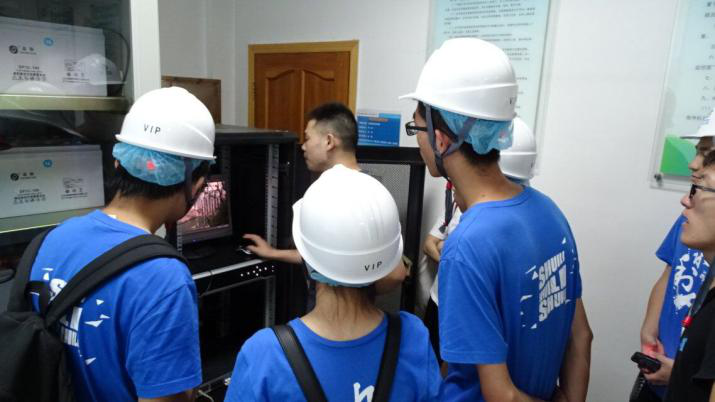 由于水电站规模巨大,上午实践团在林涵的带领下继续参观皂市水电站。首先,林涵带领实践团人员前往水工楼调研水电站水文数据并对数据进行讲解。在介绍了水电站工作人员水工“四大部分”的工作任务后,实践团成员参观了防洪监控议,学习了防洪预测原理。关于大坝位移监控,他介绍到主要分为水平位移监测和垂直位移监测,通常采用经纬仪三角测量、视准测量、人工光学水准测量等方法测量出大坝轻微移动。最后,实践团成员参观了水电站发电机组。发电机组工作时产生的声音响度达84分贝,噪音较大,但实践团成员对于发电机组知识进行了认真的学习和调研,获益匪浅。参观活动结束时,实践团成员对专业知识有了更深的认识。
