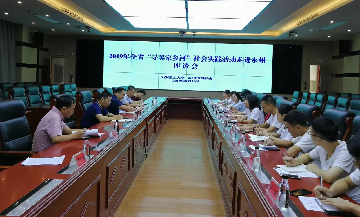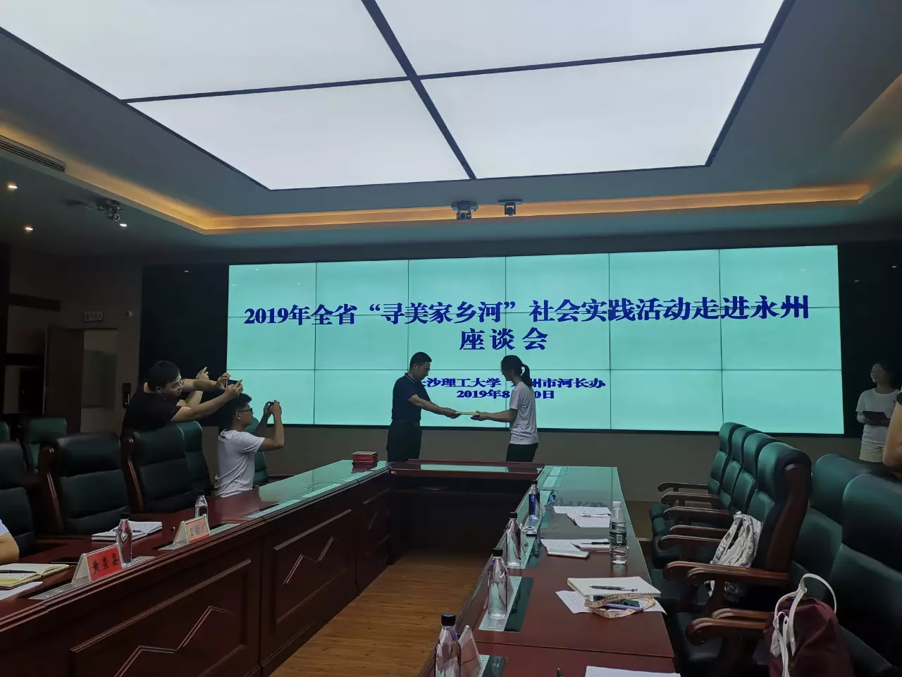 8月20日实践团从长沙出发前往永州进行调研。抵达永州后,实践团成员参加了由湖南省水利学会、湖南省河长制、88038威尼斯、永州市水利局、永州市河长办开展的2019年全省“最美家乡河”暑期社会实践活动永州座谈会。
