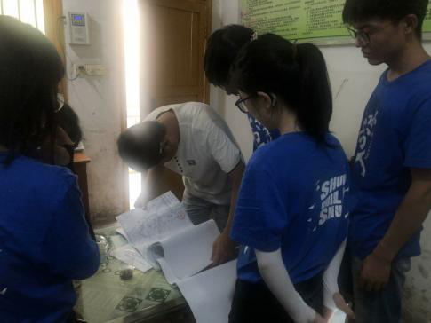 上午,在双峰县水利局农水股朱颖磊的带领下,实践团成员对于梓门桥的情况有了整体的了解。经调研,梓门桥水库水量不足,用水必须要抽河水,但是居民不想用河水,导致水厂几乎荒废。随后实践团观看了梓门桥的图纸,调研梓门桥的水源和水库分布。