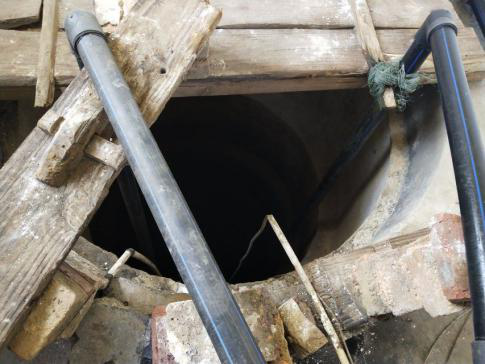 在调研了基础情况后,实践团前往大井所在地进行调研。大井深200米左右,2014年建成。村民的农产品灌溉用的是河水,从河边直接抽上来,比较方便。虽然实践团前往村民的家中进行调查,村民们大多装了进水器,喝的是烧开的水,有时间买桶装水来应急。