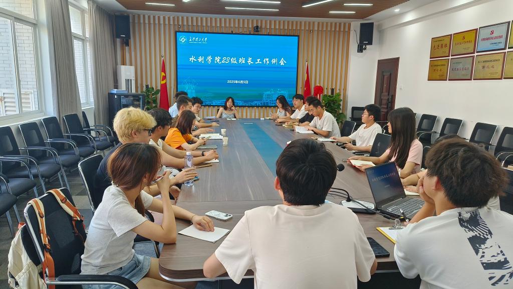 6月5日下午,水利学院在新能源一栋420会议室召开了2023级班长工作例会,会议由年级辅导员张海林老师和黄婷老师共同主持,2023级全体班长参会。