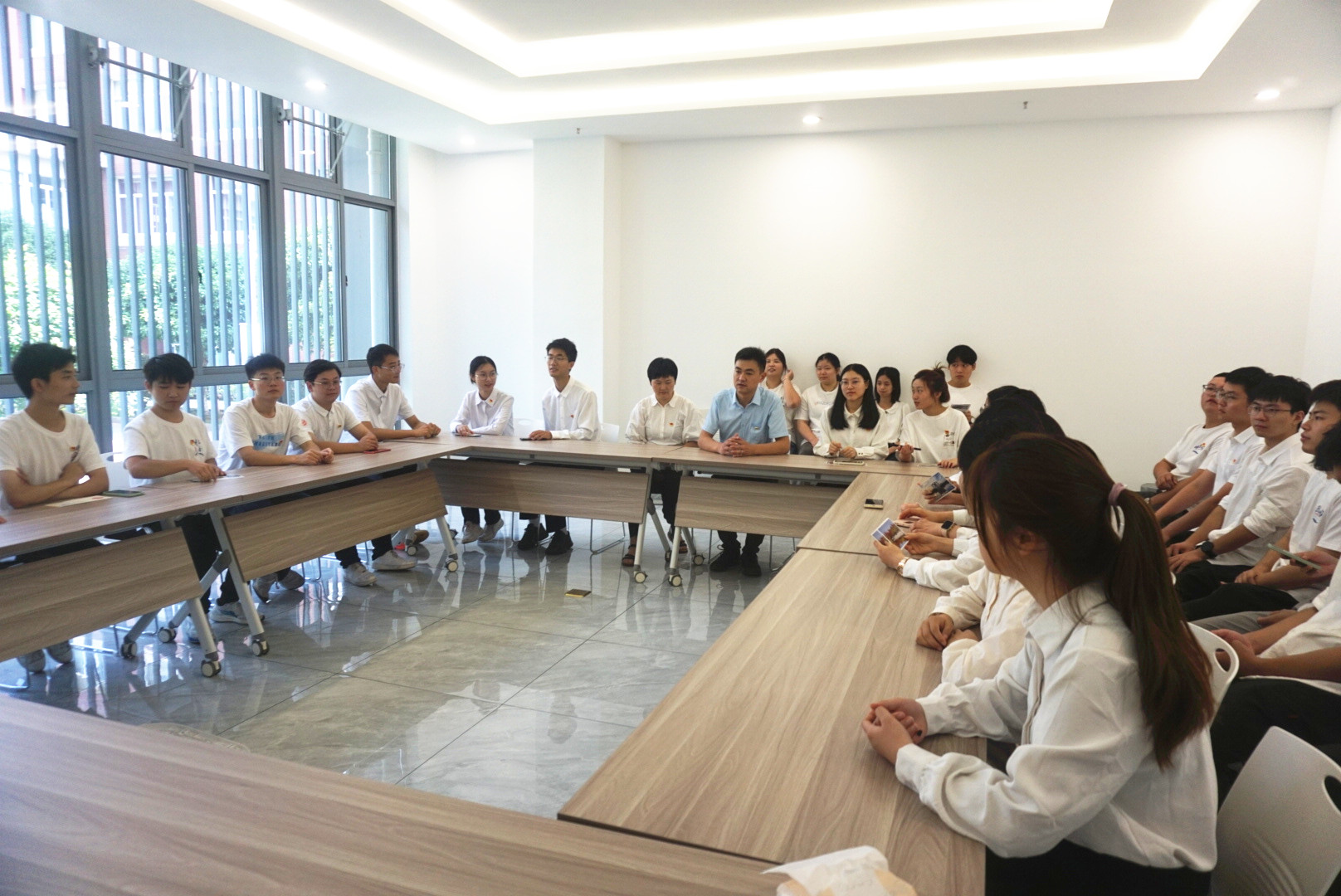 宣誓仪式结束后,新发展党员进行集中座谈,与会党员分享了个人入党历程,探讨如何立足学生党员身份,发挥先锋模范作用。“我在大学就递交了入党申请书,现在终于成为了一名中共预备党员,今天是我第一次以党员身份为伟大的党庆祝生日,既感到无比光荣,也感到使命在肩,我将始终牢记入党初心,践行入党誓言,不负党的信任和人民期待。”21级研究生党员赵逸波讲到。