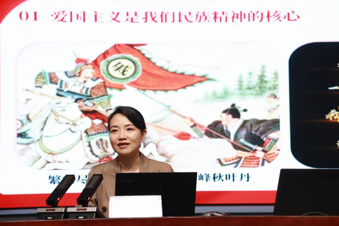 喻玲娜围绕爱国主义是民族精神的核心;其本质是坚持爱国和爱党、爱社会主义相统一;爱国就要扎根人民、奉献国家;做爱国主义精神最坚定的弘扬者、实践者、传播者以及中国梦是当代中国爱国主义的鲜明主题等5个方面展开讲述。从习近平总书记箴言出发,用“小案例”讲“大道理”,“平凡岗位”讲“不平凡事”,“身边人”讲“远方志”,讲述一批批在中国共产党发展历程中将毕生经历奉献给国家和社会发展事业的爱国主义者,并结合扎根基层建设、服务国家发展的优秀校友和持续保护、开发、利用水资源30年未间断的“大禹之子”团队的先进事迹引导新生学习榜样,汲取奋进力量。她强调,每一位中国人都应以实际行动赋予爱国主义精神更为丰富的时代内涵,作为新时代的青年大学生,更应该坚定理想信念,厚植家国情怀,涵养进取品格,以奋斗姿态激昂青春不负时代不负华年。