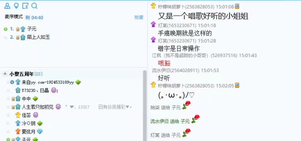 2020年5月29日下午,东黎汉文化社在YY直播语音房间举行五周年生日线上歌会,参加本次歌会的有东黎汉文化社的30名同学。