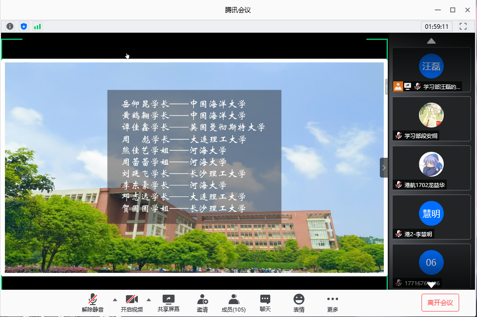 因为疫情防控的原因,本次交流会采用线上的方式举行,包括分享经验和交流历程两个环节,共一百三十余位水利学子参与其中。
