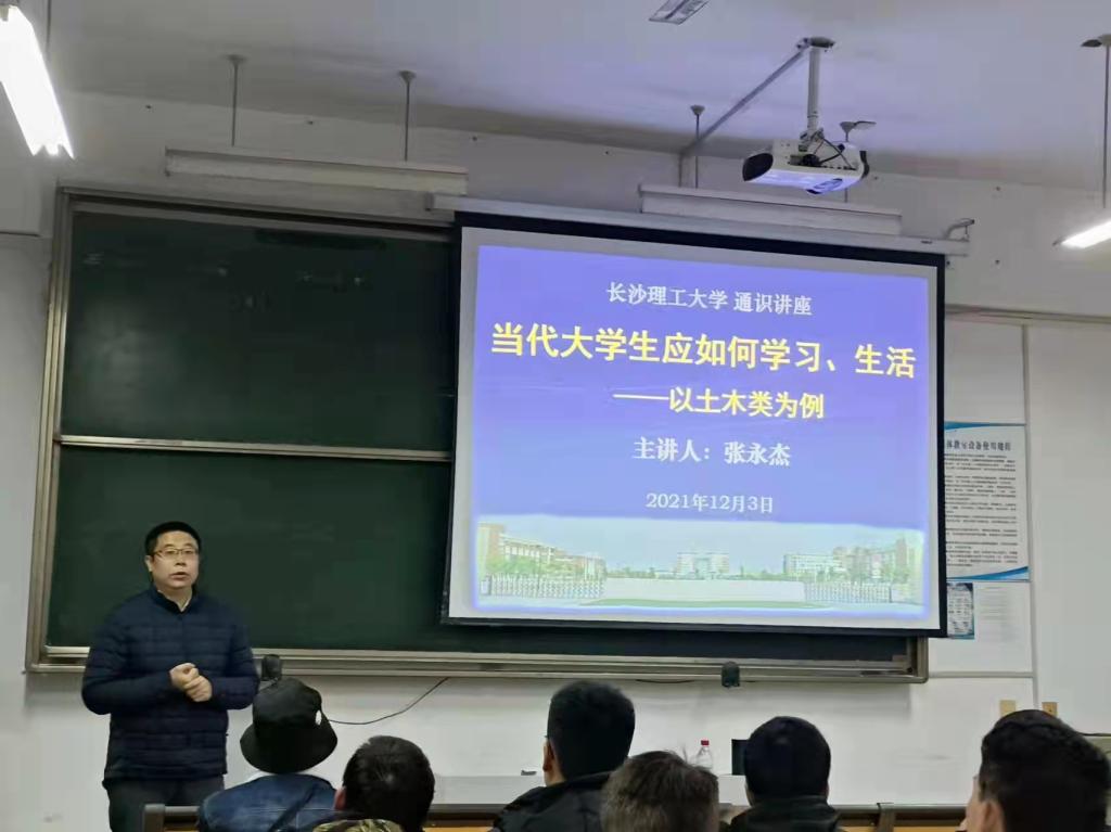 12月3日,土木学院于金盆岭7教314开展了主题为“当代大学生应如何学习、生活”的通识讲座。主讲人为土木工程学院岩隧系主任张永杰教授,现任岩土与隧道工程系主任。有120余名学生参加了讲座。