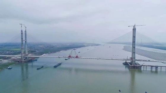 我院负责施工监控的世界最大跨度钢混结合梁斜拉桥—