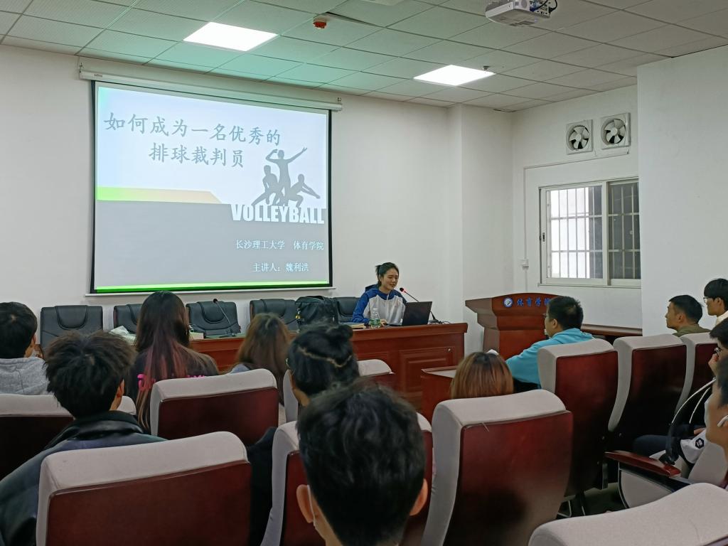 特别强调,裁判应有的敬业认真与专业果敢至关重要,比赛期间场上所有裁判要拧成一股绳,懂得相互配合和理解,才能共同努力完成整场比赛的执裁工作。讲座后,魏老师还耐心解答了同学们有关排球比赛过程中各种特殊情况如何执裁的疑问。
