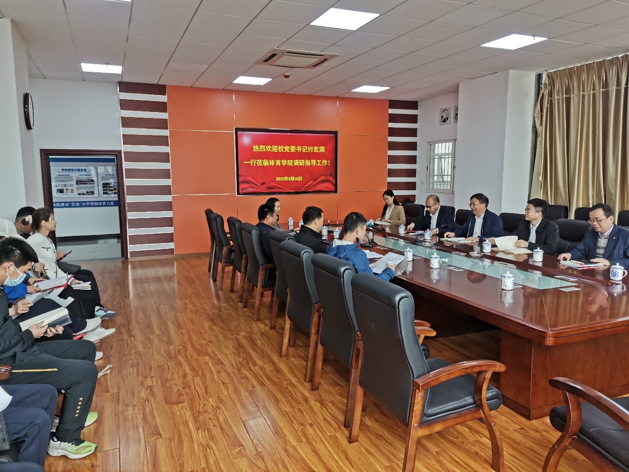 付宏渊认真听取汇报后,对过去一年学院在外树形象、内强内涵等方面取得的显著成绩给予了充分肯定,对学院勾画的美好发展愿景、清晰发展思路、明确发展目标给予高度认可。并对学院发展提四点希望:一是加强班子建设,保持团结协作、和谐共事的作风,营造好的氛围,培育纯粹的大学文化,让师生在良好的氛围中成长;二是让青年教师了解学校办学历史、校园文化,进一步激发昂扬向上的工作热情,做有情怀的“长理人”;三是进一步彰显自身特色,传承发扬体育精神,深化体育教学改革,把提升学生健康体质水平摆在更加突出重要的位置;四是重视内涵建设,在运动训练专业申报、助力人才培养、体育服务师生等方面真抓实干,推动学院高质量发展。