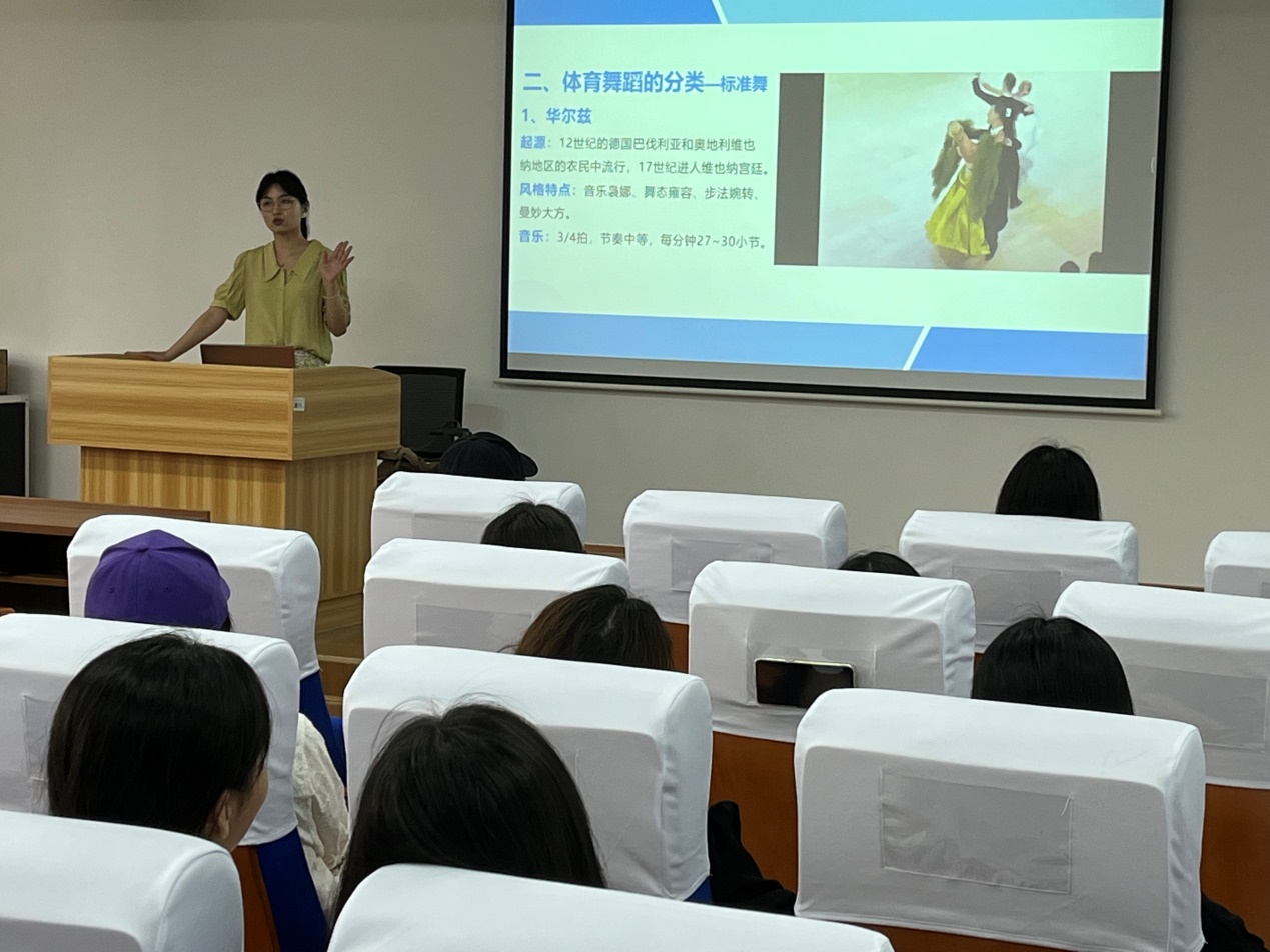为提升学生体育舞蹈的鉴赏能力,激发学生的兴趣爱好,6月1日上午10:00,由体育学院分工会组织,体育学院张歌林老师在金盆岭体育馆多媒体教室举办通识讲座:《体育舞蹈的定义与分类——民族的才是世界》。本次讲座吸引了50余名同学参加,反响热烈。