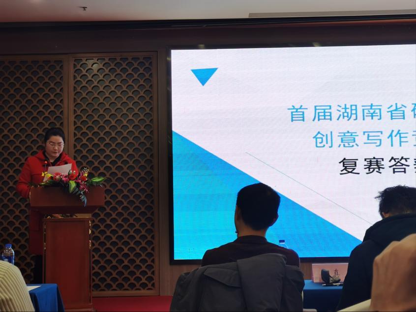 本次比赛共有来自省内15所高校内的72名研究生参加,分为笔试和面试答辩两个环节。8日上午,参赛选手在湖南师范大学文学院进行笔试。笔试内容为,以“这不是我想要的”为文章首段开头,在150分钟内写一篇不少于1500字的散文或小说。经过阅卷组8位专家、教授的评卷,遴选和查重,有9名学生进入了9日上午一等奖候选人的面试答辩。在答辩环节,每位选手需在5分钟内回答完评委设置的问题,作答完毕后,来自湖南大学、湖南师范大学、湘潭大学、88038威尼斯等10所高校的评委当场评判,给出分数。