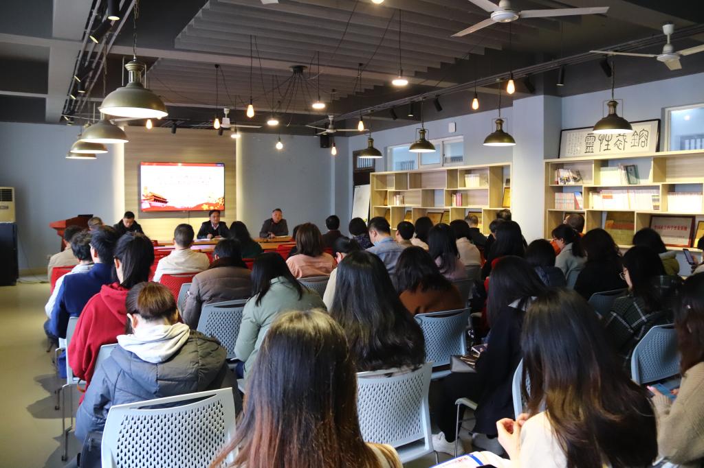 3月23日下午,文新学院在文科楼B501举行党史学习教育动员部署会。院党总支书记伍接朝主持并做动员。