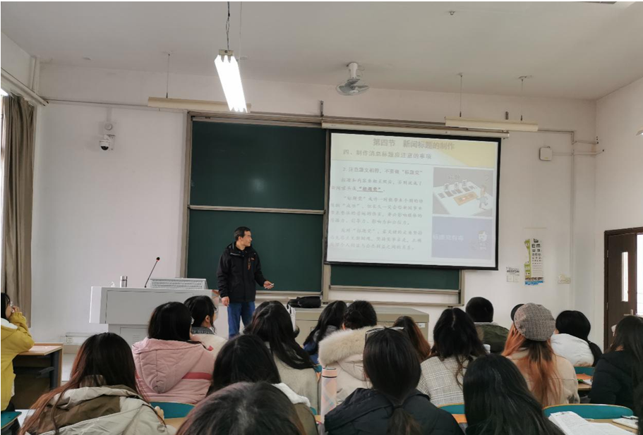 在本次课堂上,安老师讲授的是“新闻标题的制作”。在讲解制作消息标题应注意的事项时,安老师首先强调要提升新闻的判断力,不要过于迷恋制作技巧;其次,要注意题文相符,不要做“标题党”。安老师在讲授“标题党”的危害后,让同学们讨论如何反对“标题党”,然后在总结中强调:反对“标题党”,最关键的是要坚持马克思主义新闻观,坚持实事求是,正确处理个人利益与公共利益之间的关系;也只有抓住这一关键,法律和经济等手段才会长久有效。(文/孙春霞  审核/周云鹏)