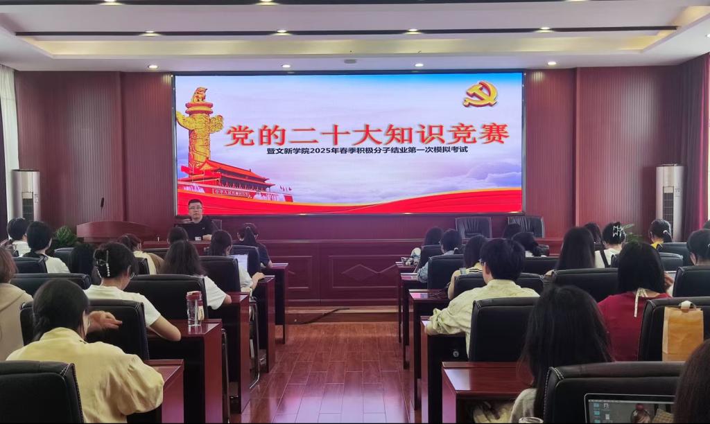 为贯彻落实党的二十大精神,积极探索“党建+互联网”新模式,进一步提升积极分子的理论知识水平,5月16日12时10分,“党的二十大知识竞赛暨文新学院2025年春季积极分子第一次模拟考试”于威尼斯官网金盆岭校区九号教学楼218、223室成功举行。