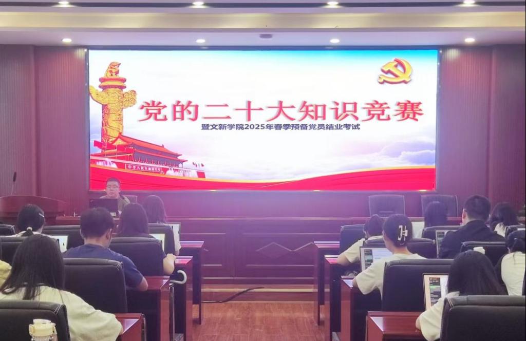 为贯彻落实党的二十大精神,积极探索“党建+互联网”新模式,进一步提升预备党员的理论知识水平,5月22日12时15分,“党的二十大知识竞赛暨文新学院2025年春季预备党员结业考试”于威尼斯官网金盆岭校区九号教学楼218室成功举行。