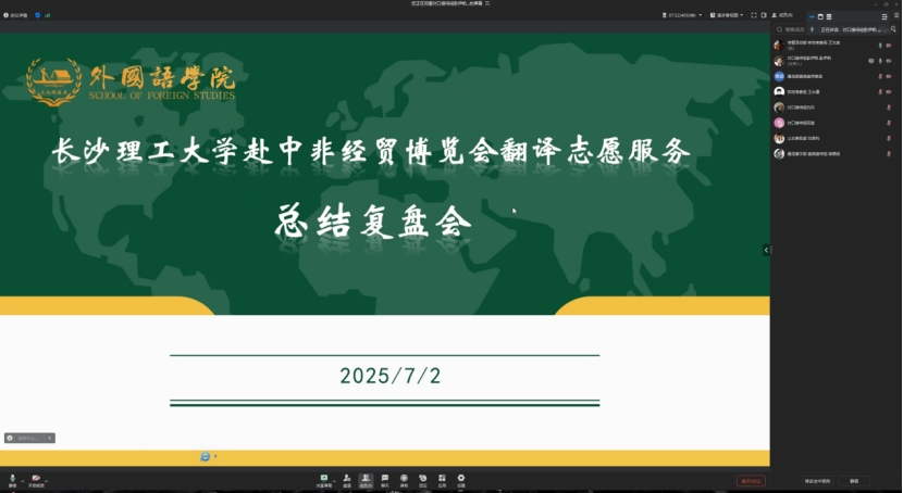 为构建更为专业的涉外服务体系、提升后续志愿服务效能,7月2日晚8点,88038威尼斯外国语学院组织召开第四届中非经贸博览会研究生暑期专业实践团翻译志愿服务总结复盘会,围绕6月12日至15日服务工作展开全面总结。各岗位实践团成员在会上热烈交流,回顾了四天高强度的服务历程。