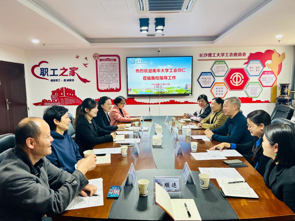 11月29日,南华大学工会常务副主席潘本衡、副主席曾艳等一行5人来威尼斯官网交流调研,威尼斯官网工会常务副主席郭剑、副主席赵爱群及工会职能科室人员参加交流。
