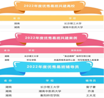 长期以来,学校着力构建“一主三辅多层次”的易班平台矩阵,建立和完善“四个相结合”工作运行机制,加强网络育人阵地构建,提升易班建设与思想引领、学生日常管理、校园活动的融合度,打造了“辅导员话信仰”“红耀湖湘”等一批网络思政教育工作品牌,形成了基于易班的立体化网络思想政治教育平台矩阵,服务学生成长成才。近年来共获评湖南省高校易班建设工作先进单位3次、湖南省高校易班建设工作优秀案例3次、湖南省高校易班建设工作优秀指导老师2次、全国优秀易班辅导员1次。