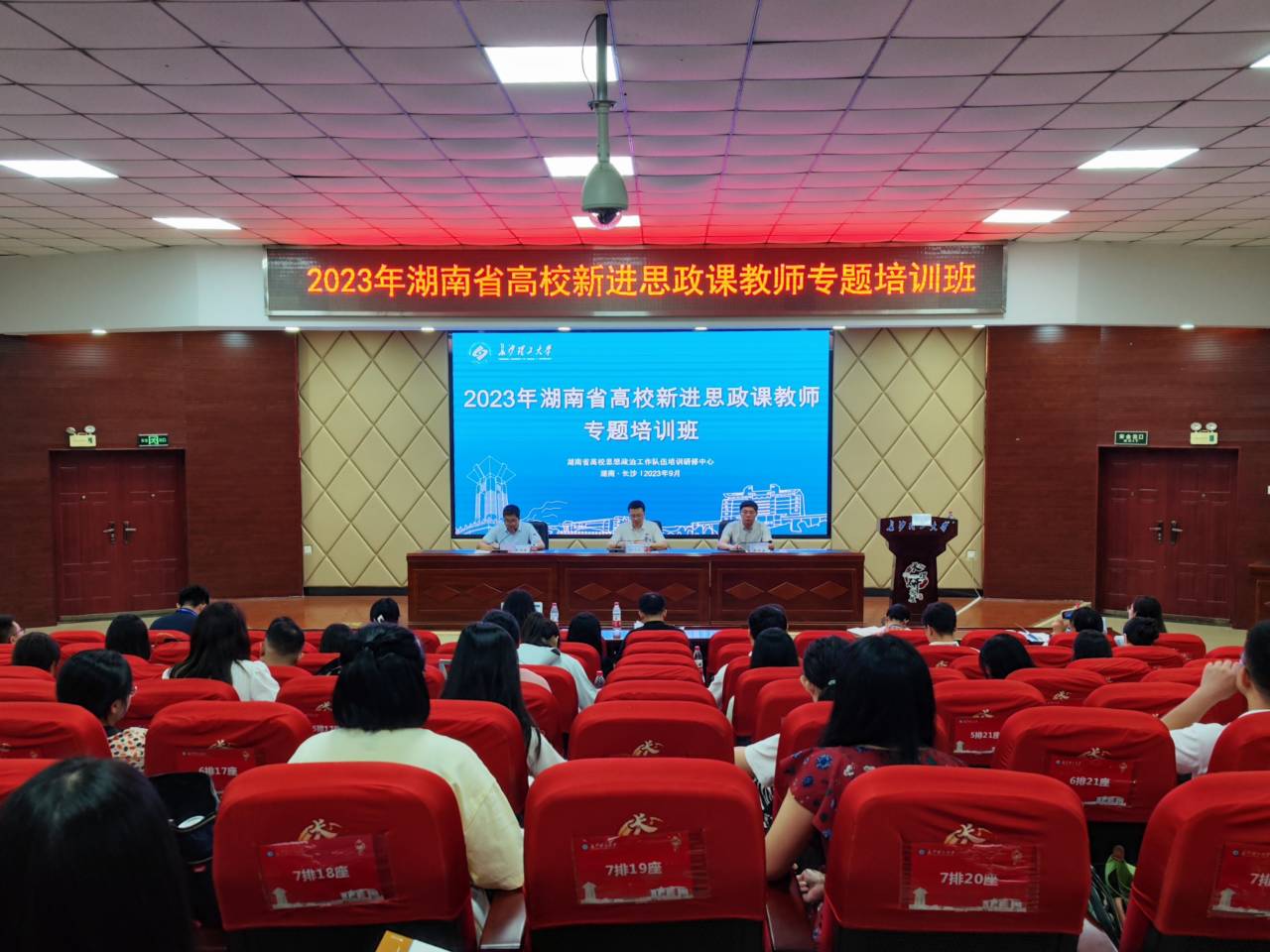 9月12日上午,2023年湖南省高校新进思政课教师专题培训班在云塘校区文科楼A200举行。省委教育工委宣传部部长、省教育厅思政处处长甘文波,省委教育工委宣传部三级主任科员曾潇潇,88038威尼斯马克思主义学院院长张明海出席,来自全省各高校的89名思政课教师参加。开班仪式由威尼斯官网学生工作部副部长陶传谱主持。