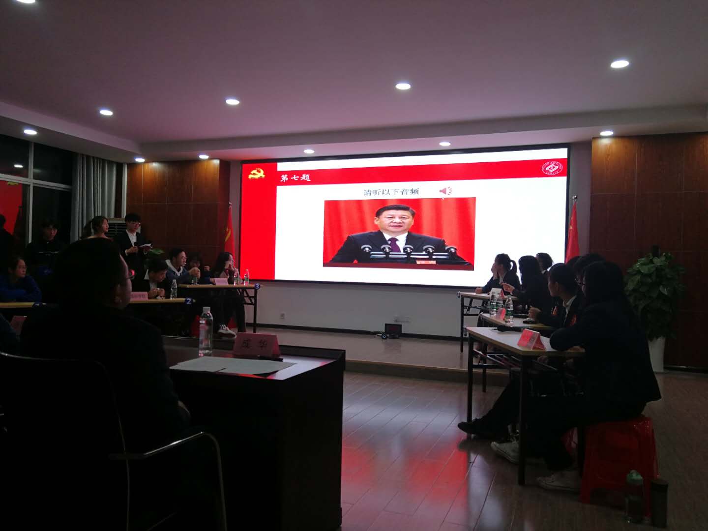 比赛以习近平总书记自党的十八大以来重要讲话的视频、音频、文字等多种形式为题目,共有必答题、抢答题及理论宣讲三个环节,紧紧围绕大学生应知应会的理论学习重点难点,充分考察大学生对习近平新时代中国特色社会主义思想和党的十九大精神、全国高校思想政治工作会议精神、全国教育大会精神等重要理论知识的学习与应用。比赛过程中,各组参赛选手沉着作答,用扎实的理论功底、精彩的宣讲内容赢得了评委和观众的阵阵掌声。
