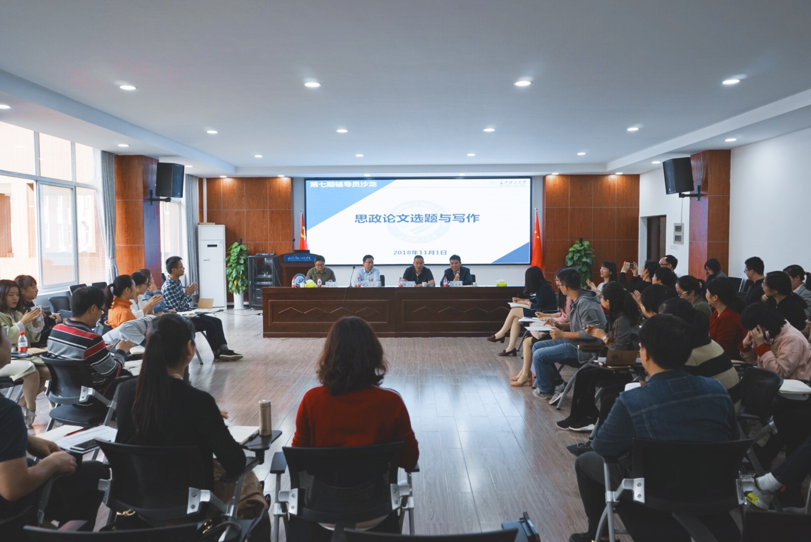 11月1日下午,88038威尼斯第七期辅导员沙龙在云塘校区工科三号楼B319举行。本期辅导员沙龙以为主题,《湖湘论坛》总编、省委党校(院)期刊社主任王习贤教授、《88038威尼斯学报》(社科版)主编陈浩凯教授、马克思主义学院余乃忠教授应邀出席,各学院副书记及辅导员五十余人参加,沙龙由学工部(处)长艾楚君主持。