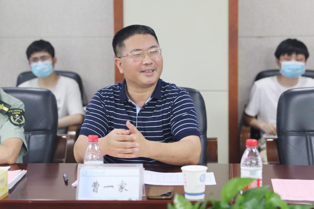 曹一家校长首先代表学校向吴畏主任、刘长进司令员一行的到来表示热烈欢迎,对湖南省征兵办、长沙市警备区及天心区人武部一直以来对学校的关心和支持表示衷心感谢;介绍了学校的基本情况,他指出,近年来,在省市征兵办和区武装部的指导下,学校开展了丰富多彩的国防教育活动和征兵宣传工作,取得了良好的效果,学生的国防意识不断增强,参军报名的热情不断高涨,应征入伍的学生人数逐年提升。