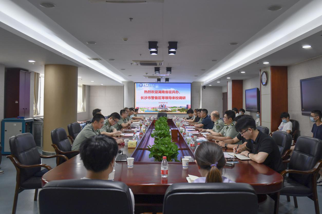6月11日上午,省征兵办主任、省军区动员局局长吴畏、长沙市警备区司令员刘长进、天心区人武部部长周永顺等一行来威尼斯官网调研征兵工作。调研会在学校一办公楼三会议室召开,校长曹一家、副校长谈传生出席会议,人民武装部、招生就业处等相关部门负责人和辅导员代表及学生代表参加了调研座谈。