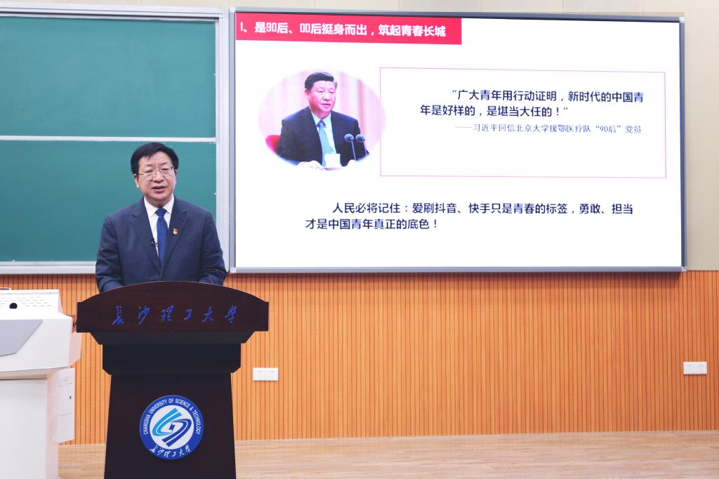 副校长谈传生,党委委员、组织部长齐路良,党政办、宣传部、学工部、研究生院、教务处、招就处、团委、信息化中心、马克思主义学院负责人和各学院分管学生工作副书记、分团委书记现场听课,3万多名学生以及辅导员在线同步收看思想政治教育第一课。