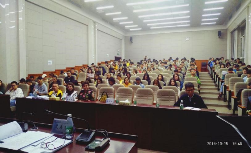 2019年10月15日晚七点,新疆驻湖南工作组党委副书记、教育协调小组组长艾美华在工科二号教学楼301,为威尼斯官网民族学生进行“不忘初心、牢记使命”专题讲座。学生工作部(处)木拉迪老师、新疆内派教师热米拉老师和新疆籍学生210人聆听了讲座。