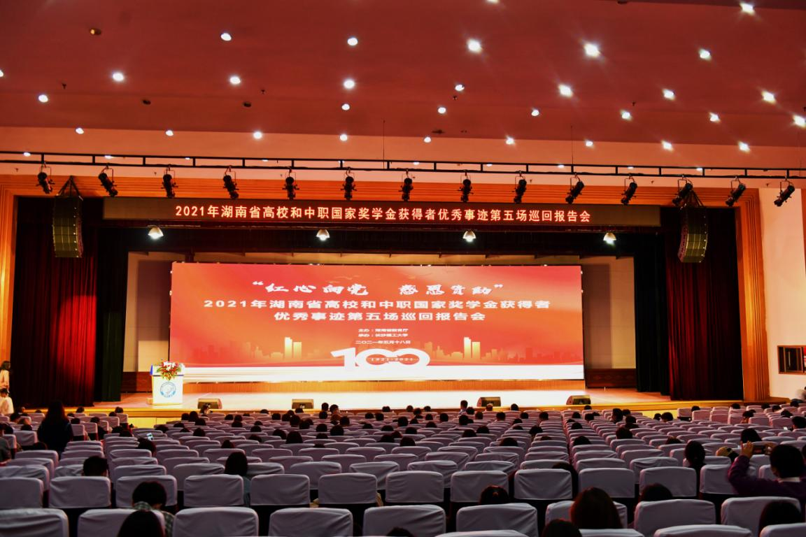 报告会上,来自湖南师范大学等高校的5位国家奖学金获得者分别讲述他们在大学生活中奋斗、拼搏、进取、奉献的青春故事,诠释了新时代青年的价值追求,给在场的学子们上了一堂感人肺腑的人生课。