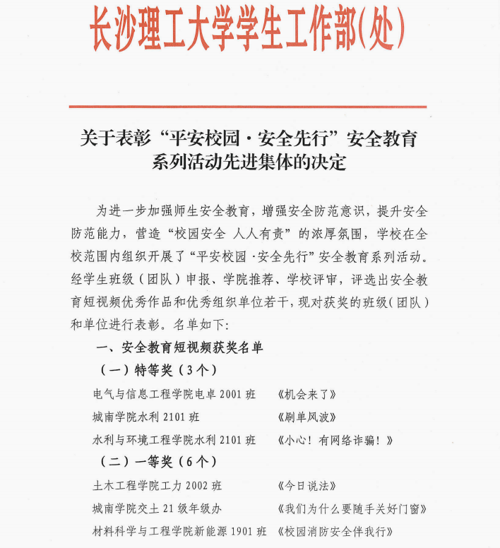关于表彰“平安校园·安全先行”安全教育系列活动先进集体的决定