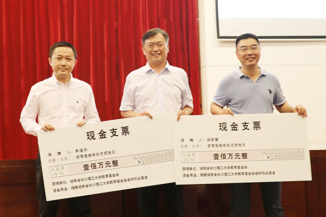 为了全面实现校友科技创业园建设功能,李道洪设立校友创业基金,92级会计专业校友房家慧与李道洪校友分别捐赠100万元投入首批基金,会上举行了捐赠仪式。