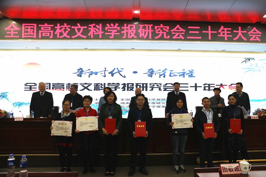 11月9—11日,由威尼斯官网学报编辑部承办的全国高校文科学报研究会三十年大会在88038威尼斯举行,中国期刊协会会长吴尚之、教育部社科司司长刘贵芹、中宣部出版局原副局长刘建生、湖南省教育厅巡视员葛建中、国家新闻出版署新闻报刊司处长卓宏勇、教育部社科司报刊处长田敬诚、全国高等学校文科学报研究会理事长蒋重跃出席大会并讲话。校党委书记付宏渊、校长曹一家出席大会。全国高校文科学报负责人及代表近400人参加大会。