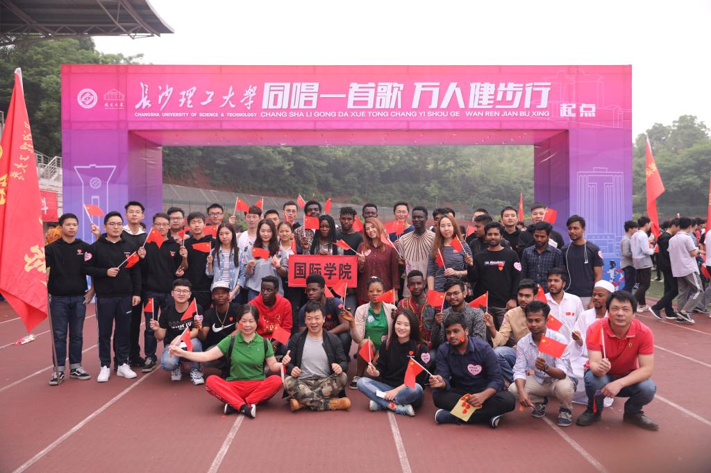 10时左右,大部分参赛队伍到达文化广场。参赛者纷纷凭印章领取校友之家特制的精美纪念奖牌,并在颁奖台、运动墙、“长理号”列车前合影留念。在文化广场上,曳舞社、民族舞蹈协会、跆拳道协会、学社联等学生社团为大家展示了热情奔放、活力四射的表演,点燃了所有在场者的激情。最后,参赛者、参演者再次在校友合唱团的带领下齐声合唱《我和我的祖国》《歌唱祖国》等经典曲目,将活动气氛推向了最高潮。越来越多的师生被吸引感染,用歌声、掌声、欢呼声加入合唱队伍,大家共同向祖国母亲送上最深情的告白:“长理人在长沙,祝福祖国繁荣昌盛!”