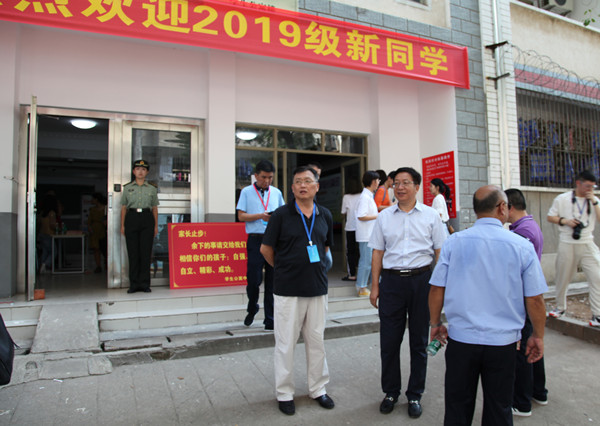 9月7日下午,校党委书记付宏渊、副校长谈传生在党政办、学工部、国资处、后勤处、保卫处、后勤集团负责人和天心区金盆岭派出所所长李省城的陪同下,看望2019级新生及家长,慰问服务在一线的迎新工作人员、志愿者。