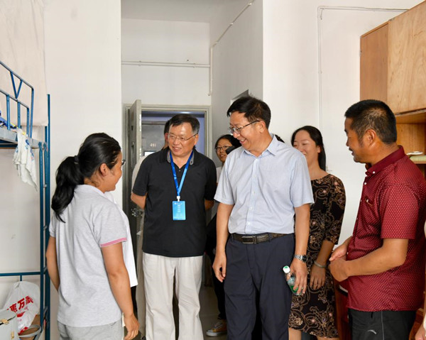 付宏渊一行先后来到了西苑11栋、西苑2栋学生公寓,了解迎新保障工作及新生报到入住情况。在新生宿舍,校领导一行遇到了正在整理床铺的交通学院道桥1906班王夏同学一家。“空调开了吗?”“还有什么需要帮助的地方?”付宏渊仔细查看了宿舍空调、照明等设施情况,关切询问了王夏同学入学后的感受,并与新生家长亲切交流。“孩子交给你们我放心。”王夏同学的家长动情地说。
