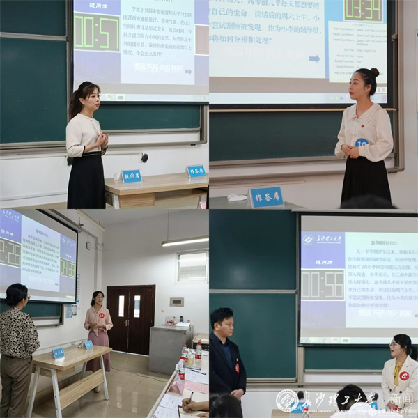 决赛分为育人案例分享、案例研讨和谈心谈话三个环节。在育人案例分享环节中,选手们结合自身工作经历,以饱满的精神态度和富有感染力的语言分享了学生工作中的育人经验;在案例研讨的来往问答中,选手们围绕案例共同辨析问题本质、研讨对策方法、总结规律经验;在谈心谈话环节,选手们又于情景再现中表现出对学生性格特征、成长成才规律的深度把握和对学生问题的解决与教育引导能力。