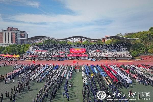 大型团体操表演《大国工匠,长理担当》为整场运动会拉开帷幕。近千名长理学子身着不同颜色的服装,通过队形变化组成“CSUST”“大国工匠”等图案,深情表达爱国情怀和匠心报国之志,赢得了现场观众的阵阵喝彩。