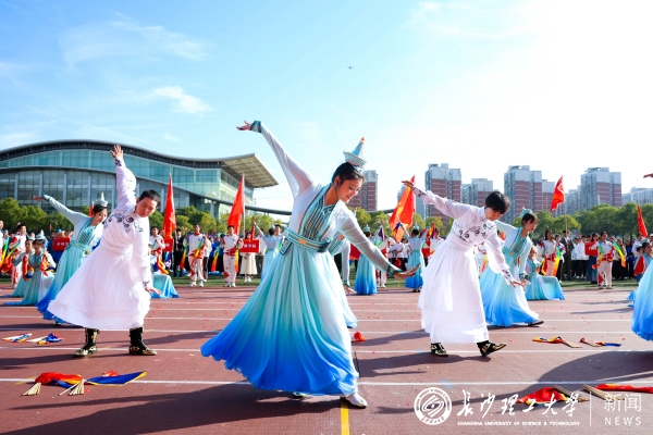 在激昂的音乐中,国旗护卫队、校旗护卫队、鲜花队、彩旗队以及由各学院、各分工会基层组织组成的方阵依次入场。热情洋溢的啦啦操、典雅飘逸的扇子舞、具有民族特色的优美舞蹈、绚丽惊艳的T台走秀……各学院精心准备的节目轮番上演,精彩纷呈。其中,体育学院教师方阵带来的节目《群猴欢聚云影湖》,巧妙融合现代拉丁舞、操化技艺与中华传统文化元素,一招一式间尽显风采。方阵表演各具特色、创意无限,令在场的观众赞叹连连,充分展现了长理师生积极向上、团结活泼的精神风貌。